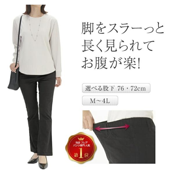 Amazon ブーツカットパンツ レディース 美脚パンツ ウエストゴムパンツ ロングパンツ 通販